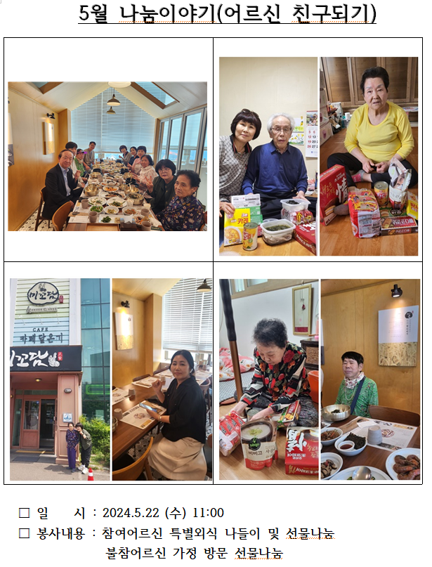 '홀로 어르신 친구되어주기' 5월 나눔