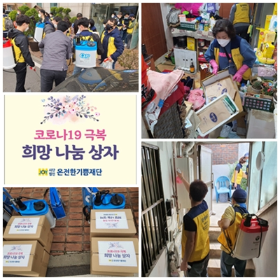 □ 시행내역 - 일시 : 2021.4.17 (토) 09:00 ~ 15:00 - 봉사내용 : 20가정 * 도배 : 1가정 * 정리.수납 : 1가정 * 방역 : 20가정 * 코로나19극복 희망나눔 꾸러미전달 : 20가정 (라면 5개,도시락김 16개입,카스타드케잌 12개입,샴푸.린스 2세트,물티슈 1개)